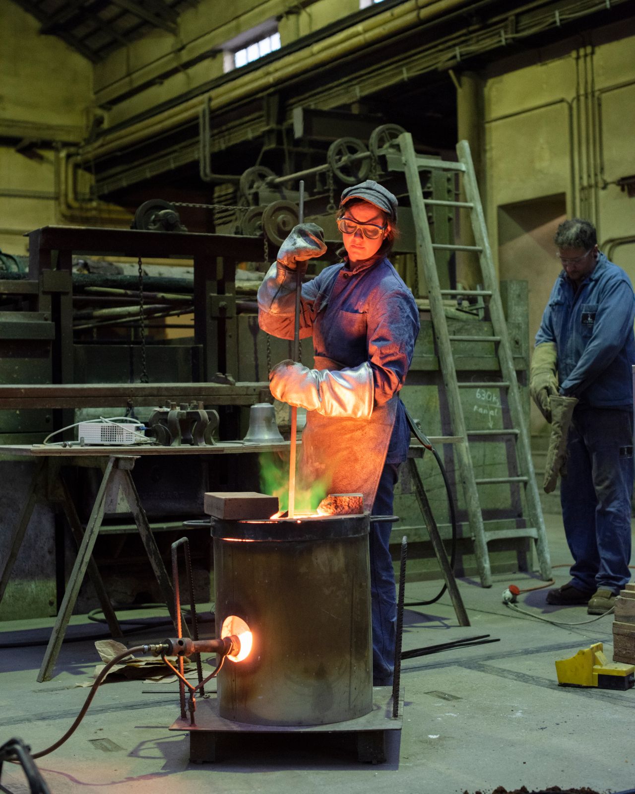 Die Brunnenskulpturen bestehen aus recycelter Bronze und wurden von Hand gefertigt.